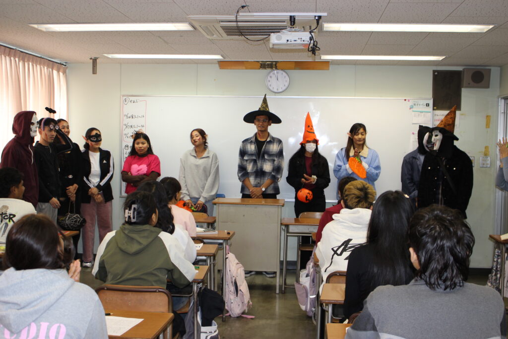 10月27日(月)国際文化ビジネス学科と国際ホテル学科の学生たちが広島アカデミー日本語学校に赴き、少し早いハロウィンを行いました。