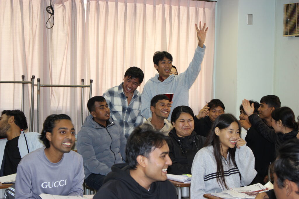お菓子を配ったあとは各自で考えたゲームを日本語学校の学生たちと楽しみました。