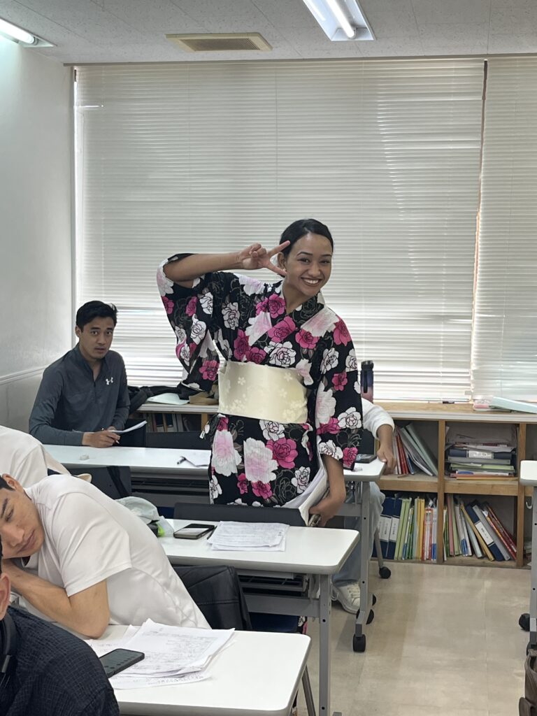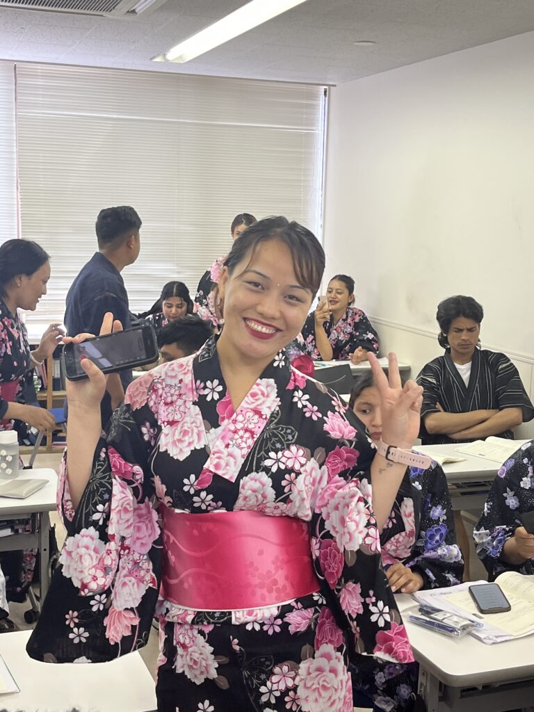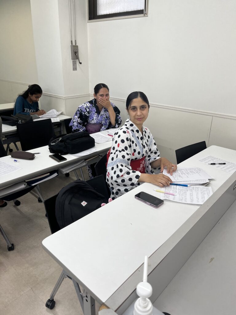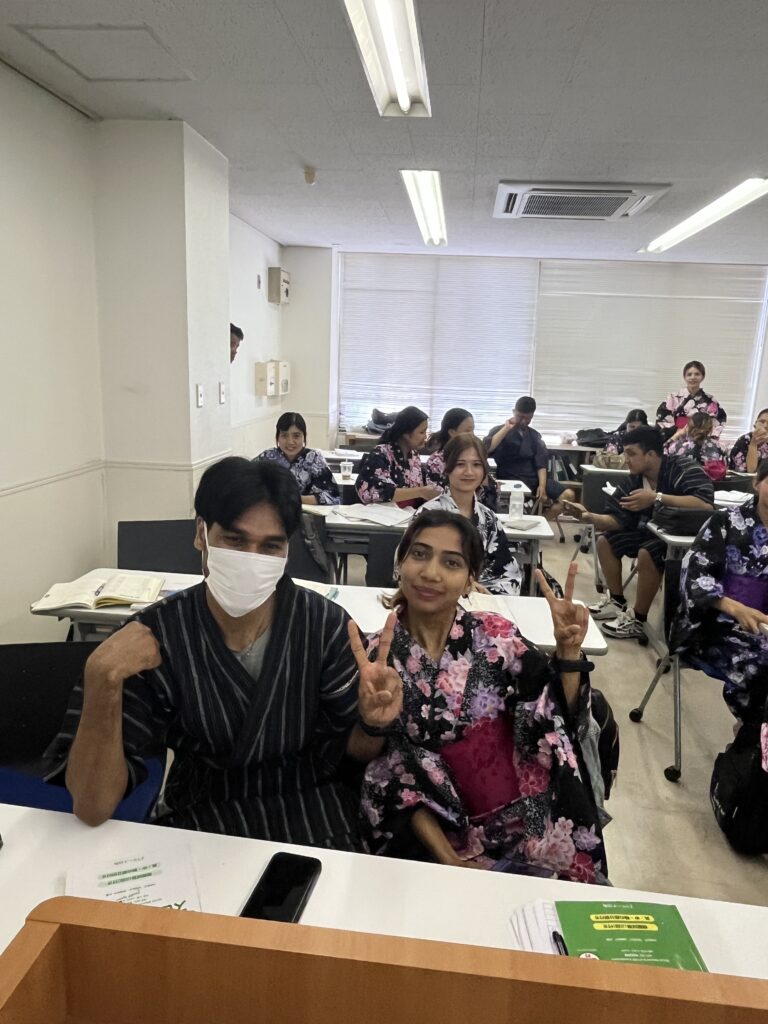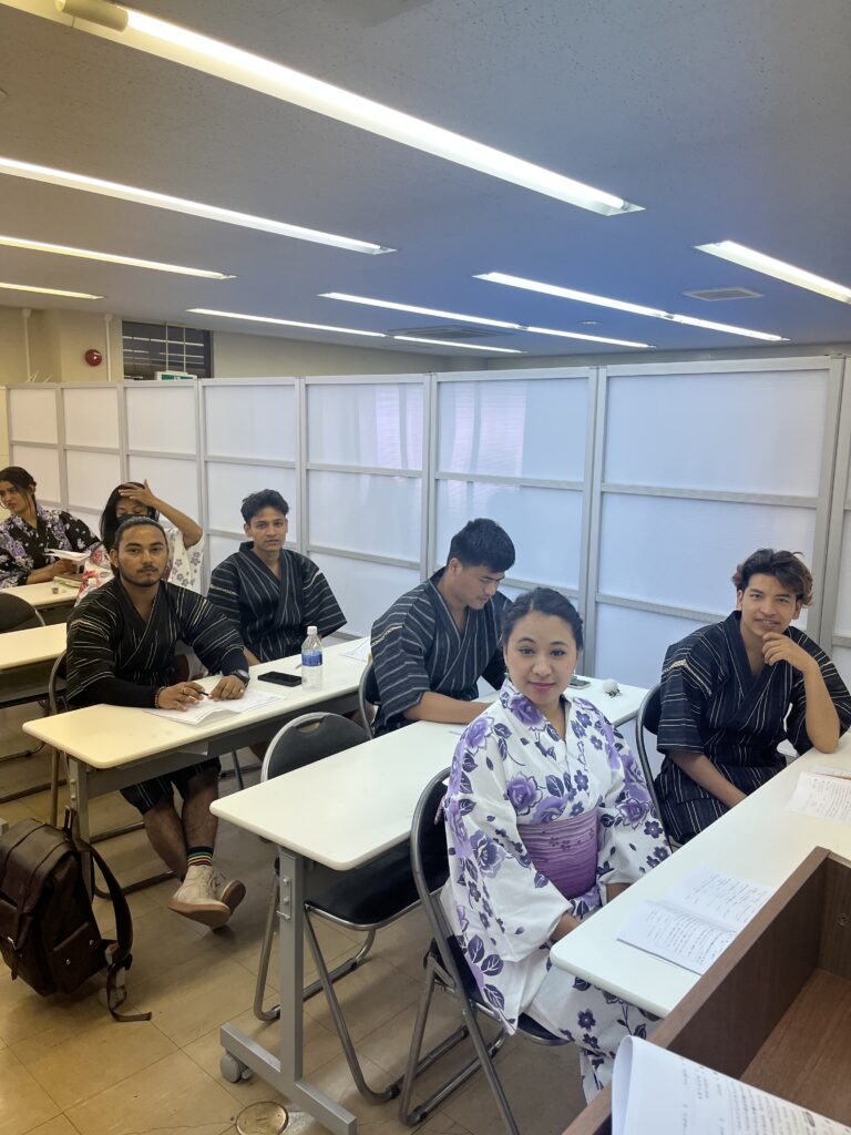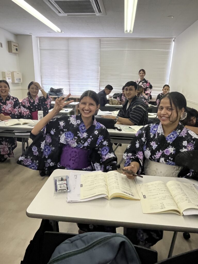 浴衣着付け体験 2025年7月7日 最終更新日時 : 2025年7月30日 kyobun_gaigo@kg-edu.jp 7月7日(月)七夕に合わせて希望者に浴衣の着付け体験を行いました。みなさん沢山ある浴衣と帯の中から好きな組み合わせを真剣に考えていました。用意していた笹に短冊もたくさん飾ってもらいました。