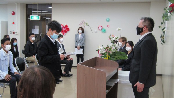 国際文化学科28名、国際ホテル学科28名、国際ビジネス学科27名の入学式を行いました。