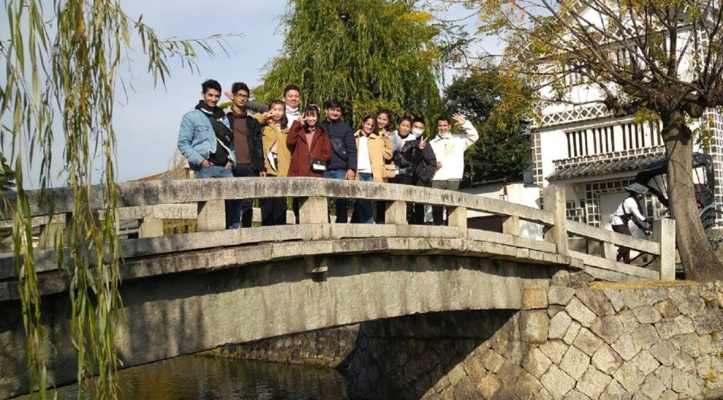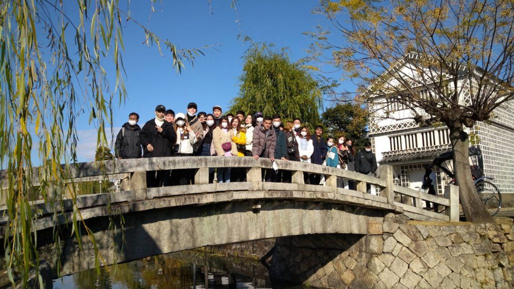 美観地区に到着するとみんなで古い家や蔵屋敷、倉敷川沿いの柳並木など美しい景色を楽しみました。