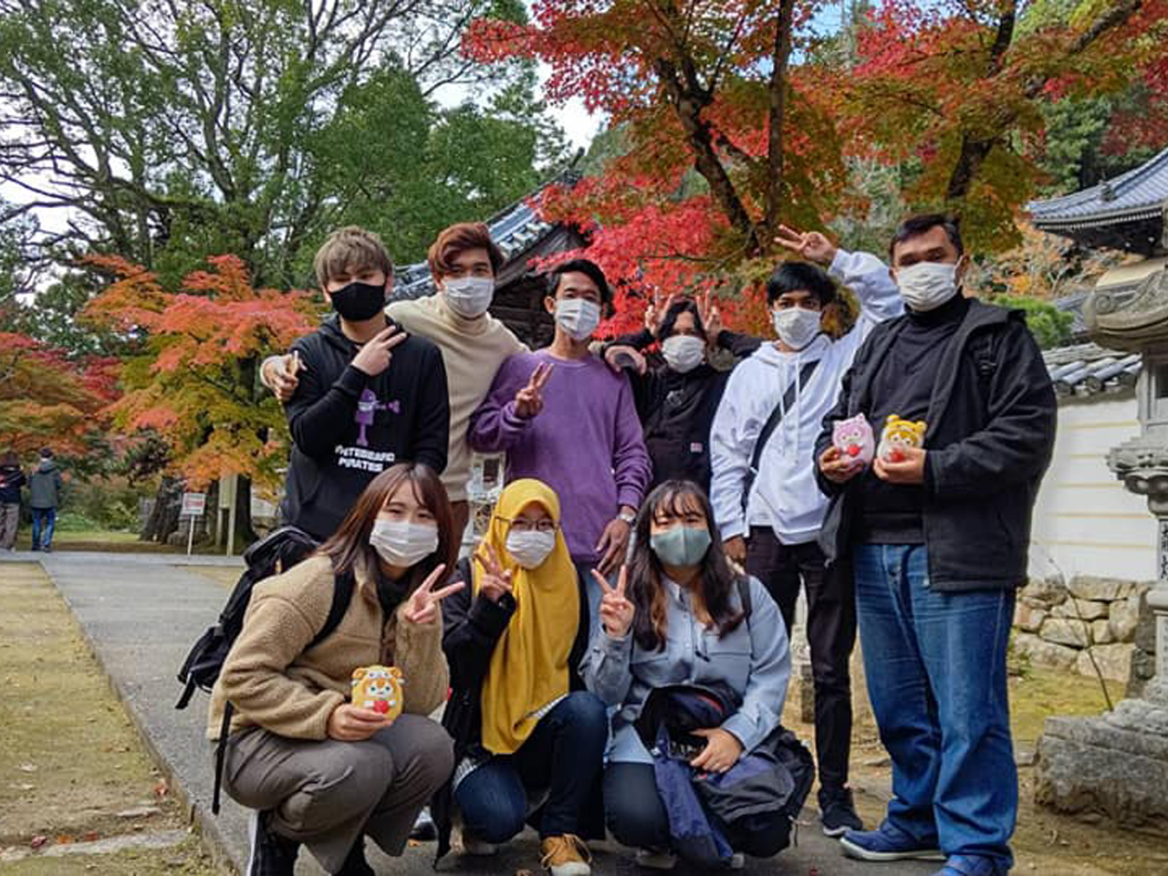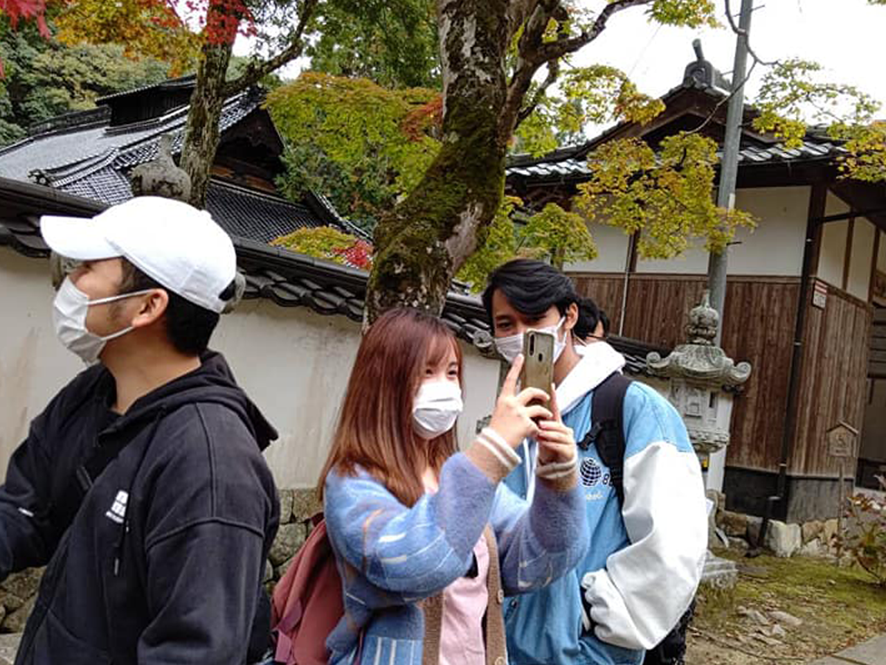 学生たちは自国では見られない紅葉見て写真を撮ったり、