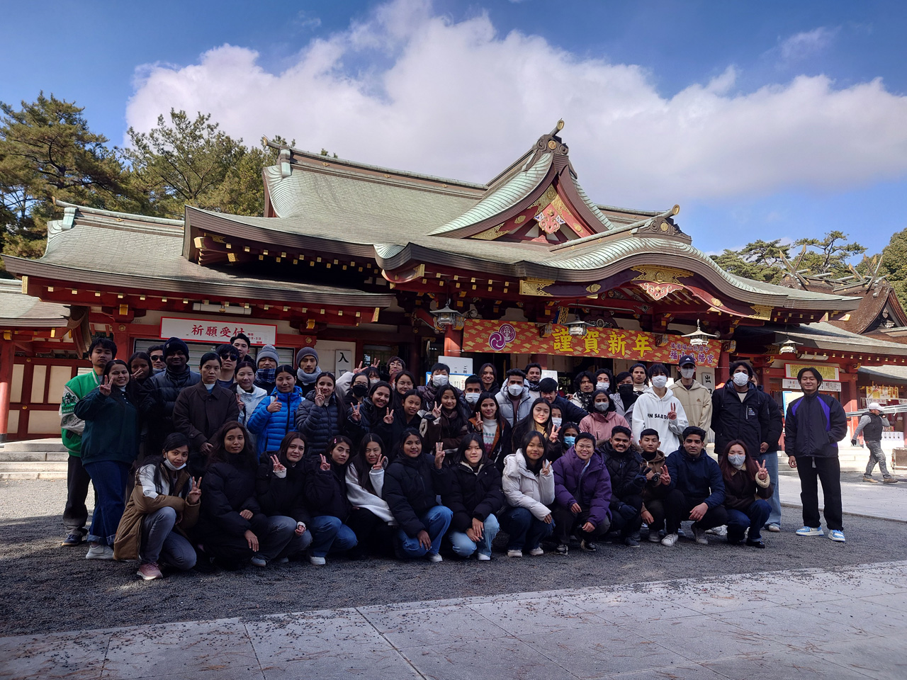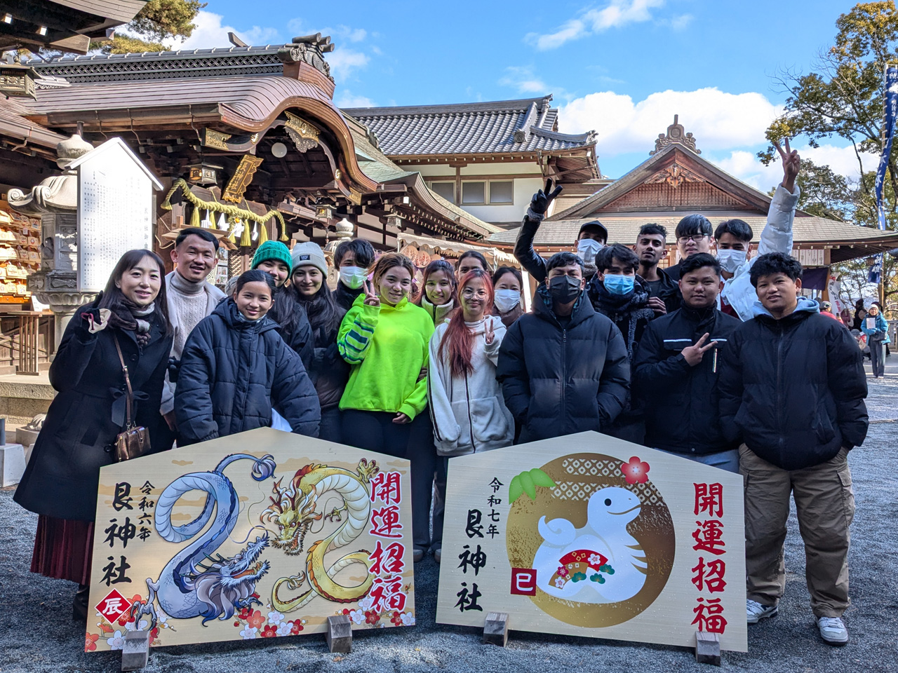2025年初めの授業で、学校の近くにある福山八幡宮(ふくやまはちまんぐう)へ初詣に行ってきました!