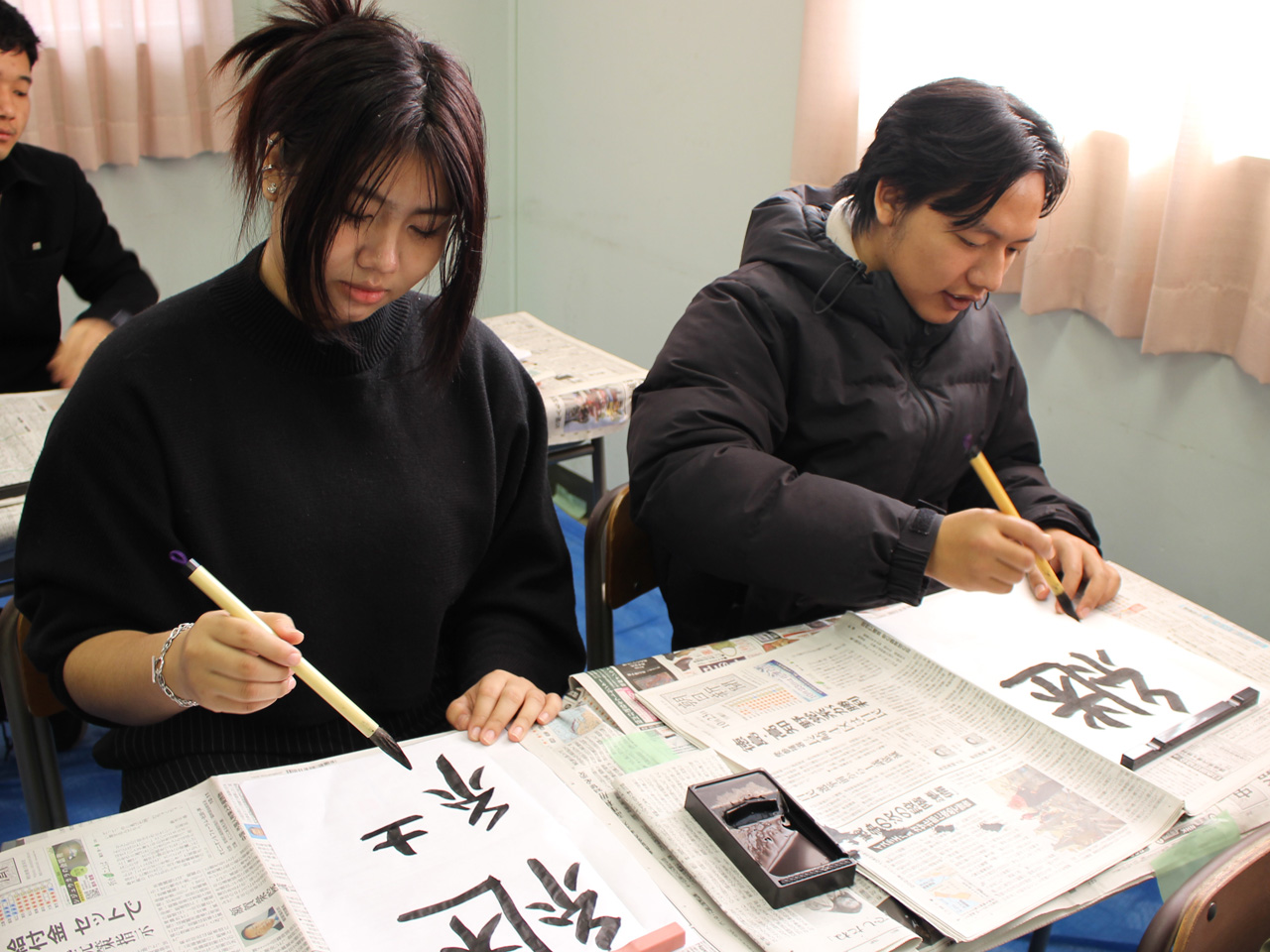 そんな中でも、半紙に書く本番ではみなさん一生懸命に筆を走らせていました。